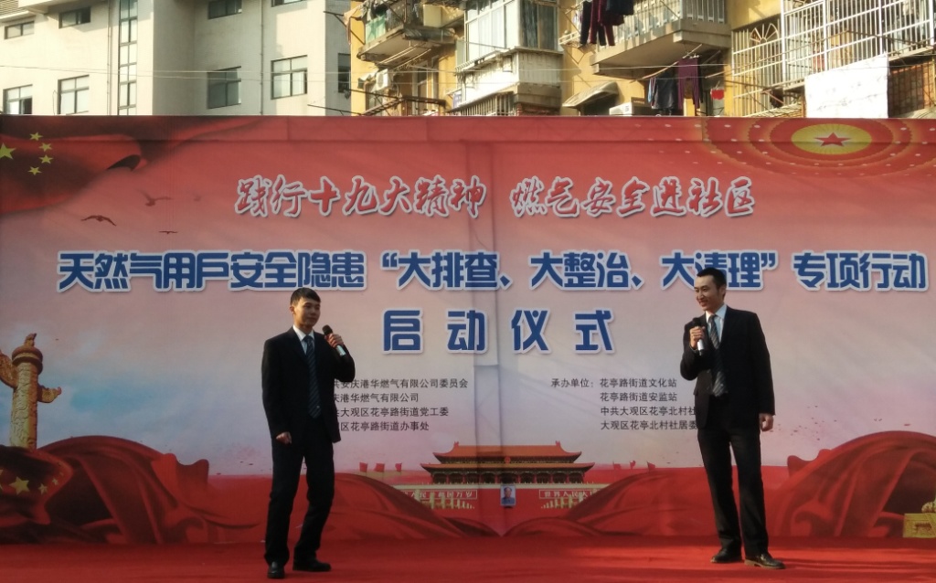 為認真貫徹落實市住房城鄉建設委、安監局、公安消防支隊三部門聯合發出的《關于開展城區天然氣用戶安全隱患專項整治工作的通告》(下稱“專項整治通告”)精神,12月12日,針對全市民用天然氣客戶戶內安全隱患“大排查、大整治、大清理”專項行動啟動儀式在我市花亭北村廣場舉行。這是迄今為止整改力度最大、涉及范圍最廣的一次燃氣安全隱患集中大清理,也是安慶港華踏實踐行黨的“十九大精神”,推動“十九大精神”在工作中落地生根的具體體現。