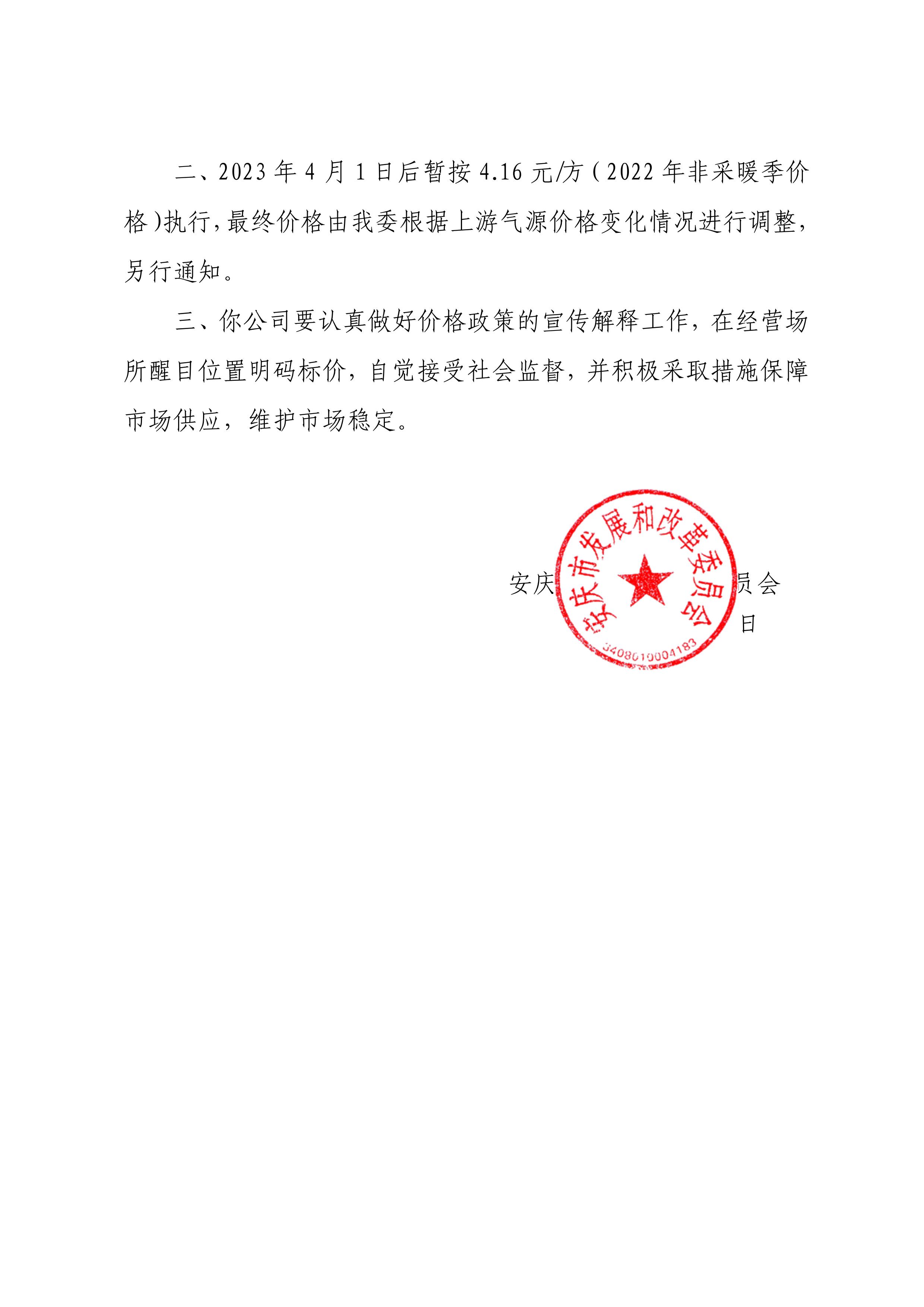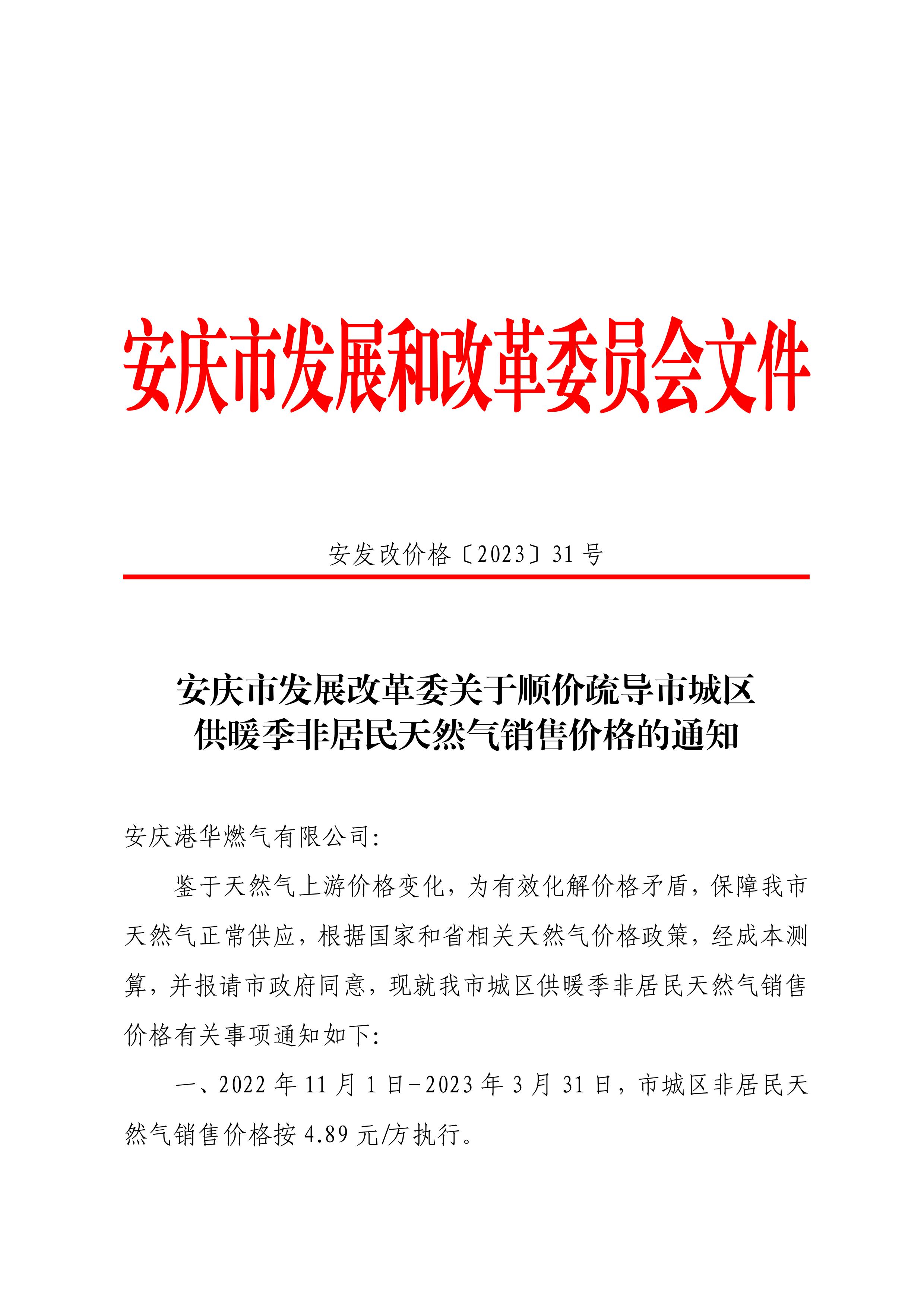 關于順價疏導市城區供暖季非居民天然氣銷售價格的通知
