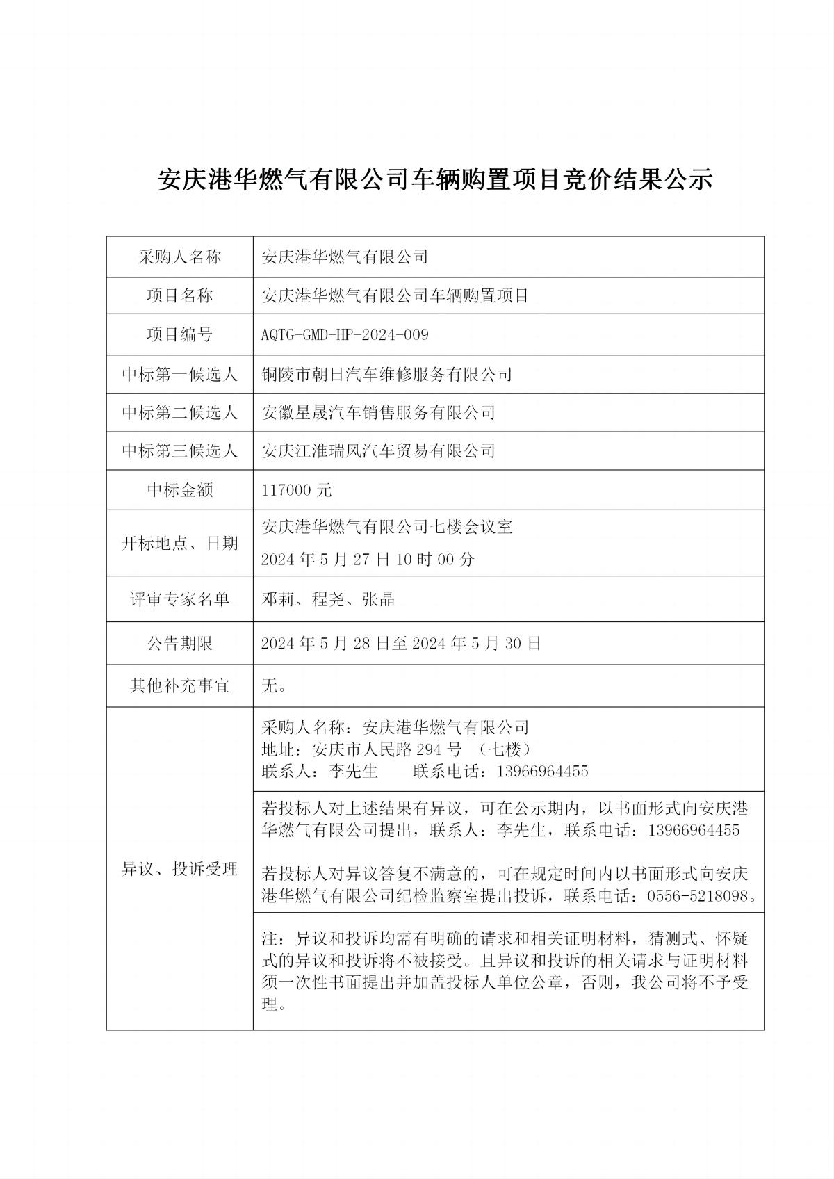 安慶港華燃?xì)庥邢薰拒囕v購(gòu)置項(xiàng)目競(jìng)價(jià)結(jié)果公示
