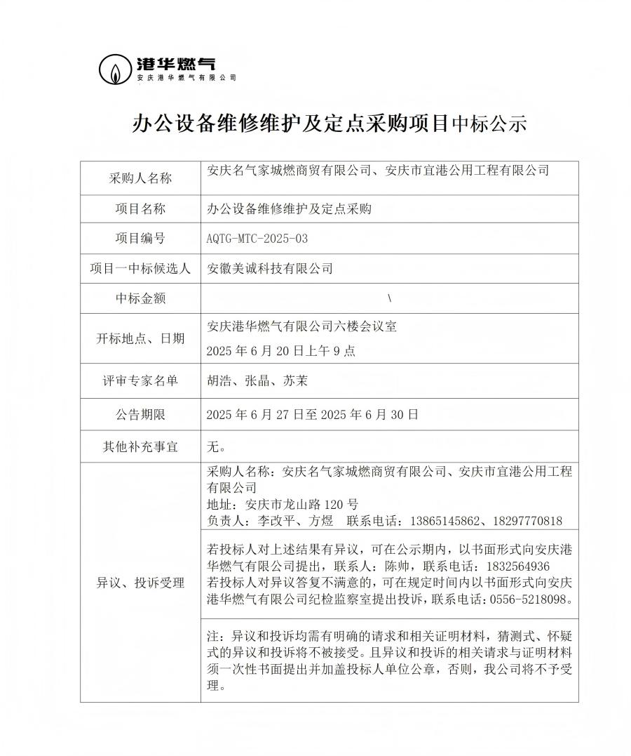 辦公設(shè)備維修維護(hù)及定點(diǎn)采購項目中標(biāo)公示