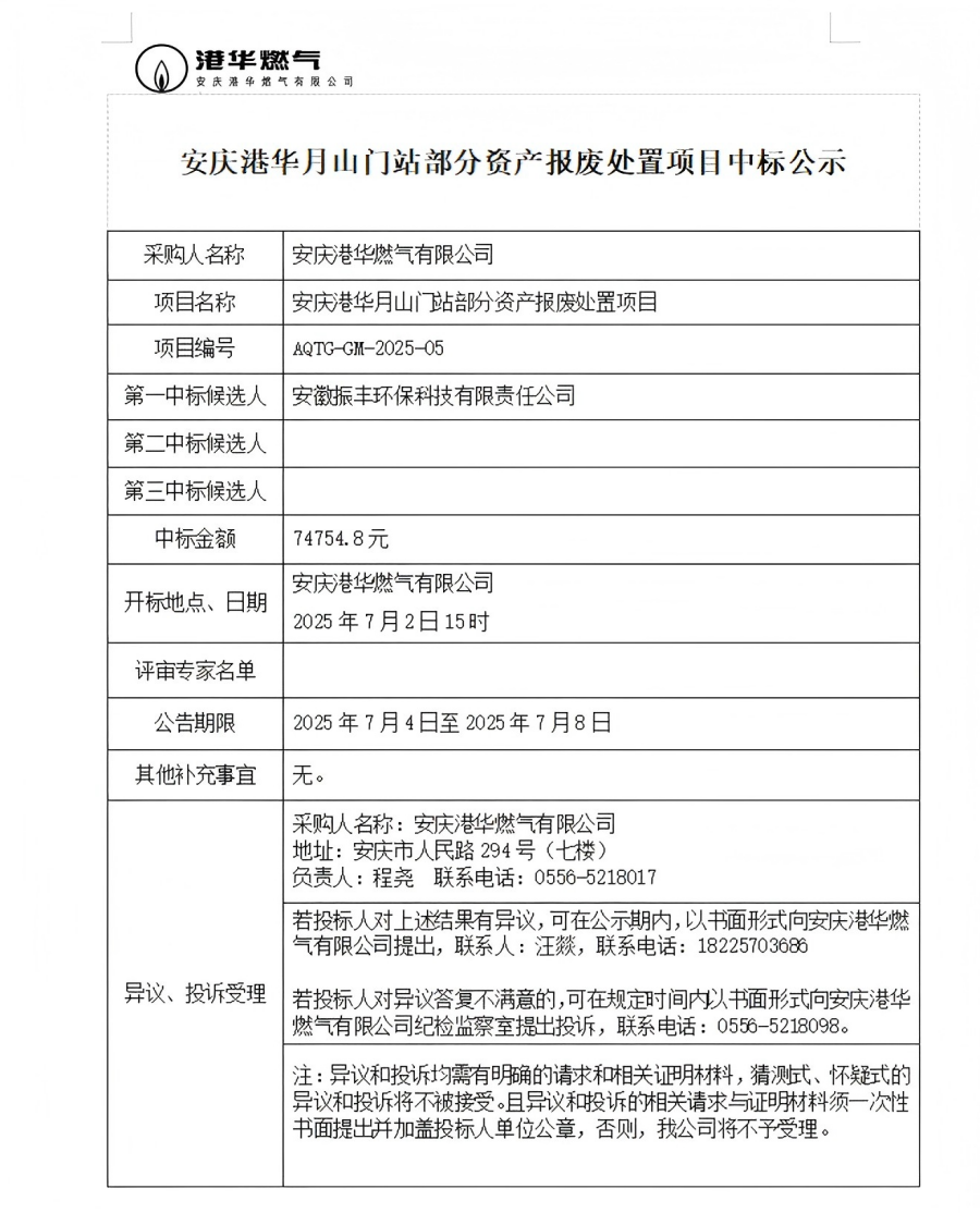 安慶港華月山門站部分資產報廢處置項目中標公示