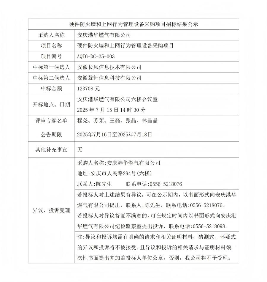 硬件防火墻和上網行為管理設備采購項目招標結果公示