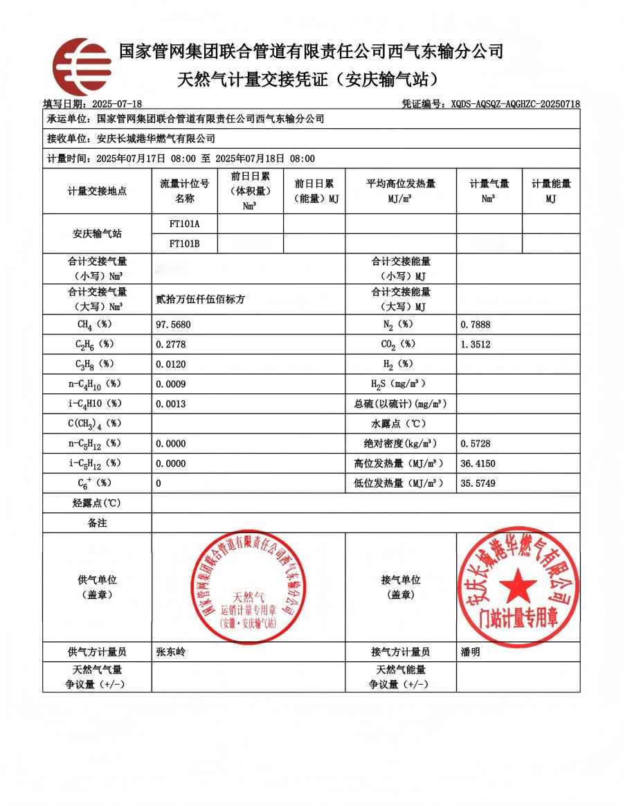 2025年8月份供氣可靠性關鍵指標