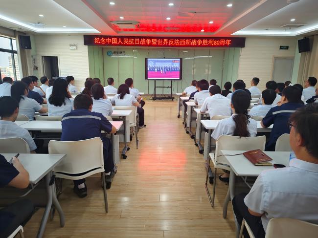 9月3日上午,紀(jì)念中國(guó)人民抗日戰(zhàn)爭(zhēng)暨世界反法西斯戰(zhàn)爭(zhēng)勝利80周年大會(huì)在北京天安門廣場(chǎng)隆重舉行。安慶港華公司黨委積極組織全體員工集中觀看大會(huì)直播,聆聽習(xí)近平總書記重要講話,在銘記歷史中,弘揚(yáng)偉大愛國(guó)主義精神、偉大抗戰(zhàn)精神,進(jìn)一步鼓舞團(tuán)結(jié)奮斗的干勁。約130名員工在多個(gè)會(huì)場(chǎng)參加觀看。