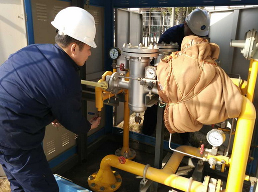 圖為管網運行人員正在檢查燃氣調壓設施