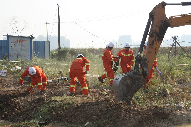 近年來,隨著城市基礎設施及老舊小區改造工作不斷加快,工程建設對地下天然氣管網的安全運行帶來的威脅亦不斷加大。現場模擬輝煌路中壓A級PE160燃氣管道被第三方施工單位破壞,安慶港華維搶修中心在接到搶險指令后,迅速派出專業搶險隊伍于30分鐘內趕到事故現場,并有條不紊地開展事故現場控制、疏散警戒、現場信息傳遞、事故逐級報告、消防聯動配合、搶險方案制定、儀器裝備操作、停氣復供、事故現場調查等程序,通過多部門配合,最終成功控制險情并修復了受損管道,恢復正常供氣。