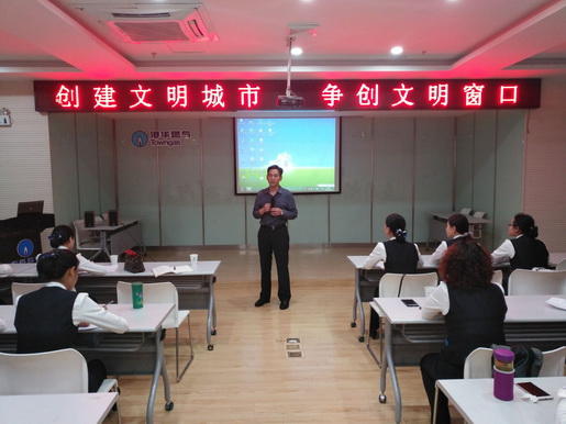 會上,副總經理楊善俊做動員講話,要求客戶服務部作為公司服務前沿和窗口,要以此次活動為契機,通過提高自身專業素質,提升服務品質,利用“回頭看,看不足”等方式找差補缺,積極爭創市級、省級文明窗口,打造出港華燃氣優質服務品牌。