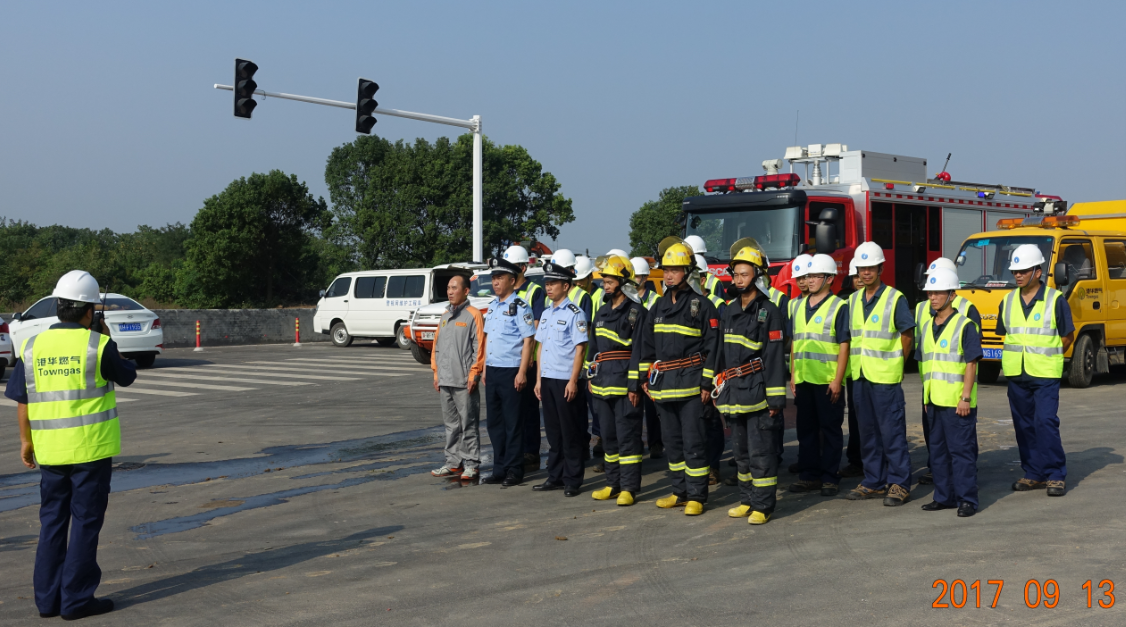 13日下午3時,我市輝煌路遭飛機轟炸破壞,現場天然氣發生泄漏。市人防辦啟動應急預案,通知公司人防專業隊緊急救險。安慶港華接到市人防辦指令后迅速啟動公司應急預案,人防專業隊立即趕往事發地點實施緊急救援。抵達的搶險人員先行疏散現場,封鎖道路設置警戒區,2名搶險隊員穿戴防靜電服、攜帶測漏儀等裝備進入現場,查看確認管道受損情況。公司現場指揮啟動了公司級應急預案,同時,與稍后抵達的消防、公安人員組成現場指揮部。整場救援行動圍繞疏散警戒、信息傳遞、現場指揮、緊急搶險、恢復生產等關鍵環節緊張而有序進行,各方力量協同一致,經過近40分鐘的模擬實戰演習,成功完成了緊急救援任務。